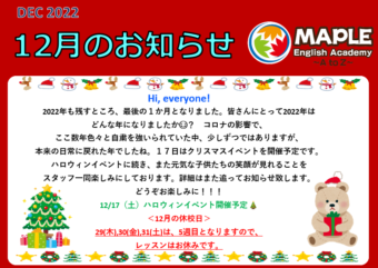 12/17には、クリスマスレッスンがありますよ!お楽しみに♪