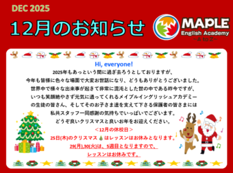 12月のお知らせです☺