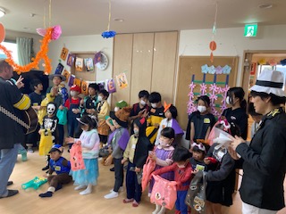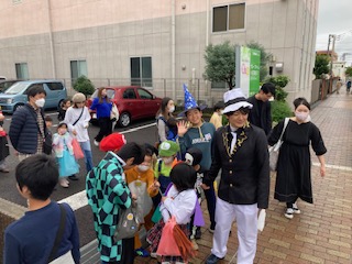 みんなでクラフトをして、その後は近隣の施設へ、“Trick or treat!”(^^♪